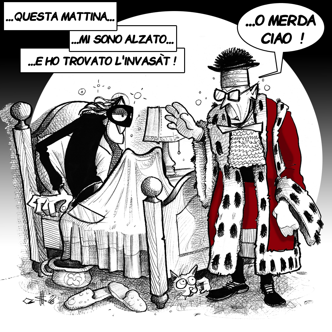 …sopra un palcoscenico dove va in scena la rappresentazione della DEMENZA PLANETARIA….e come sfondo una carnevalata nella quale, tra NEGAZIONE o AFFERMAZIONE preferisco…SPARIZIONE
