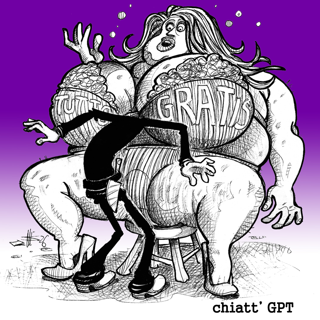 …di conoscenza nozionistica, VOI che cacciate il vostro cervello tra le rassicuranti MINNE del SAPERE ARTIFICIALE, cervello già sufficientemente logoro per via di assuefazione da MINCHIATE TeleRadioGiornalistiche …sappiate….ogni ragionamento che LA GRANDE MERETRICE, ( disposta a TUTTO pur di aiutarvi ) farà in sostituzione del VOSTRO apparato cognitivo…sarà un FURTO alla vostra capacità di calcolo ed associazione, alla vostra PERSONALITÀ e alla vostra ANTICA eredità di….ESSERI UMANI