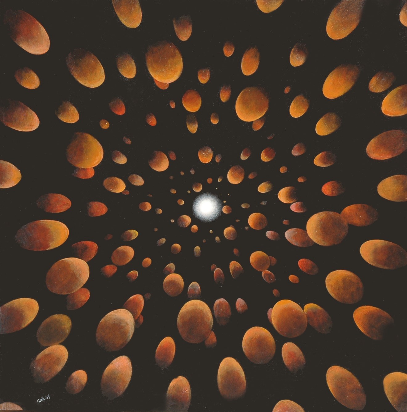 Stampa digitale di alta qualità, incorniciata in legno scuro dell’opera “Convergenza in un punto” anno 2007, acrilico su legno ( per originale contattare tramite e-mail info@mrkill.it ) vedi l’originale