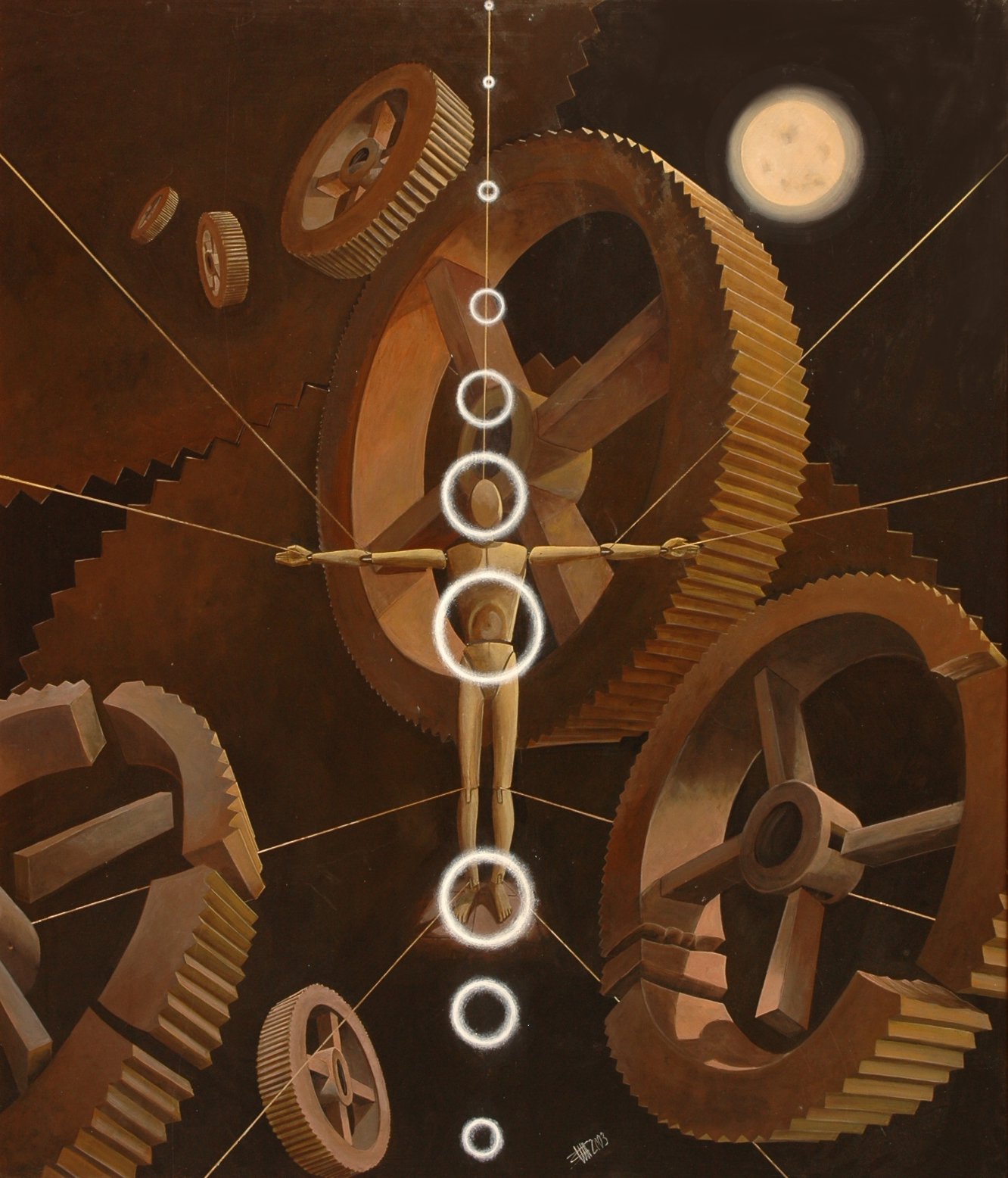 Stampa digitale di alta qualità, incorniciata in legno scuro dell’opera “RISVEGLIO” 2003, acrilico su legno ( per originale contattare tramite e-mail info@mrkill.it ) vedi l’originale