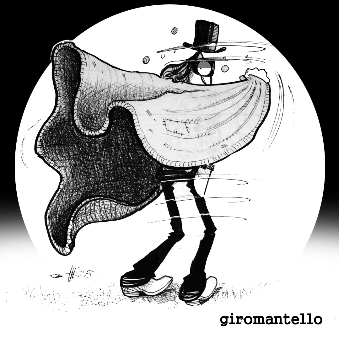 …fulmineo ed efficacissimo gesto di TOTALE dissenso…ecco che il sipario repentino calava voltando le terga all’umana insufficienza….un arco di dorato autocompiacimento disegnato nell’aria e uno spostamento d’aria di PIENA e nobile soddisfazione…il fastidio spariva….l’imprevedibile gesto di un MAGO, di un folle, di un saggio e di un PAZZO…il MONARCA di se stesso aveva appurato che la plebaglia, nel suo packagin irreprensibile, non possedeva gli strumenti adatti per comprendere il SUO regnare…egli girò il mantello a tutto….ORMAI…girò il mantello alle considerazioni senza utilità, girò il mantello al rognoso tepore dei rapporti sociali, girò il mantello a chi lo consigliava e a chi lo sconsigliava, a chi voleva portargli fortuna e a chi voleva portarlo alla NORMALITA’, a chi si lagnava, a chi si spulciava, a chi si protendeva e poi pretendeva, a chi implorava e poi deplorava, al vicino e al lontano, al cinese e all’africano….