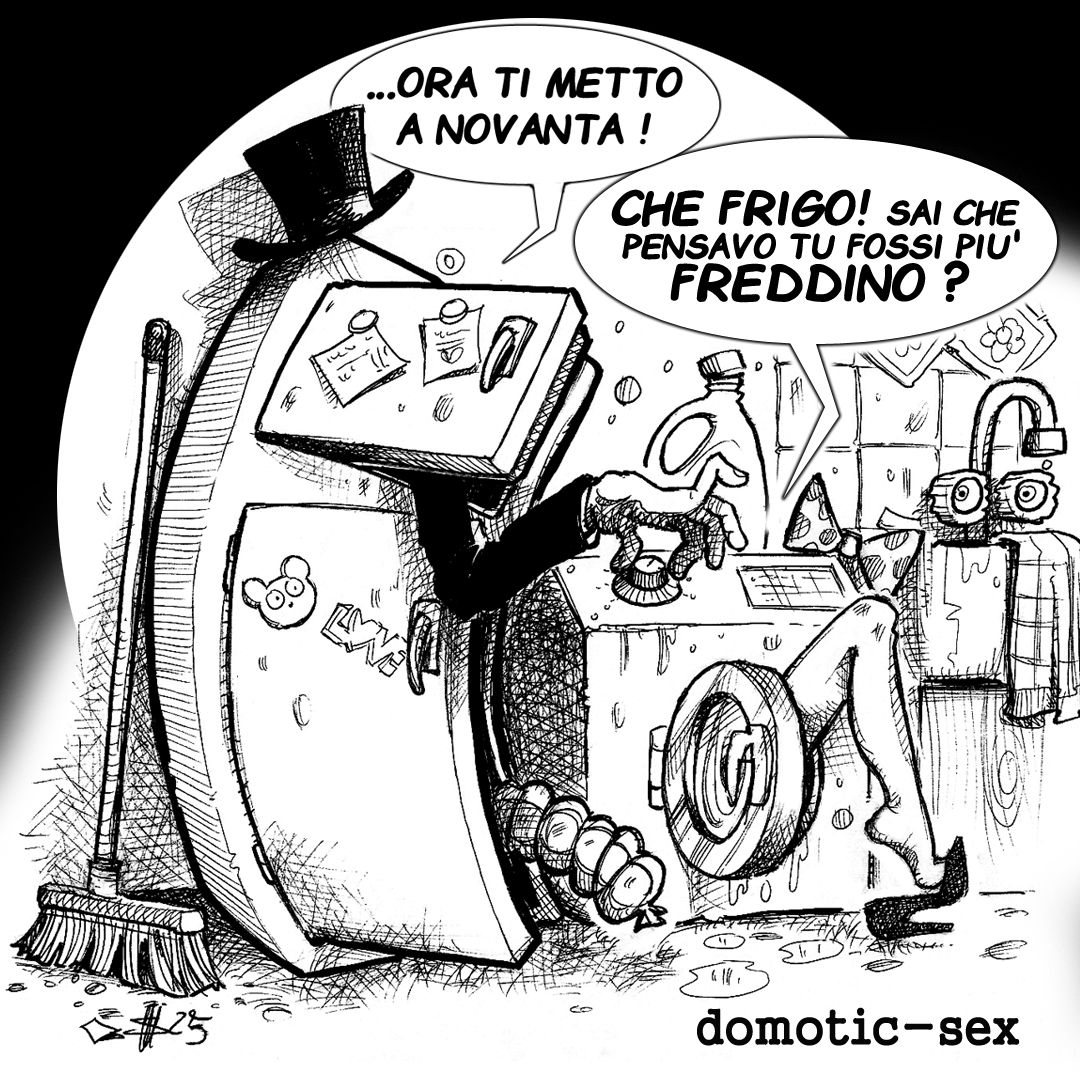 …sdegno per quelle DIMORE dove regna il FRIGORARIATO solo perchè si da più importanza a non far marcire la roba piuttosto che SMACCHIAR mutande…lavatriciste e lavastovigliesse BASTA con questa elettrodomesticazione per mano dei frigo!….VIVA LA FRIGA !